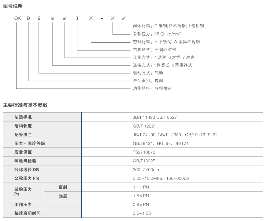 本系列产品传动部分均为恒力臂的紧凑型齿轮齿条传动机构。产品根据工作环境的要求导致配套元件的不同,分为常规快速启闭阀和防爆快速启闭阀:根据紧急快速启闭时储能元件的不同又分为储气罐式和弹簧式两种不同的型式。执行器气缸尾部设有行缓冲装置,防止快速动作时的缸击及震动,有效保护阀门及设备安全运行。