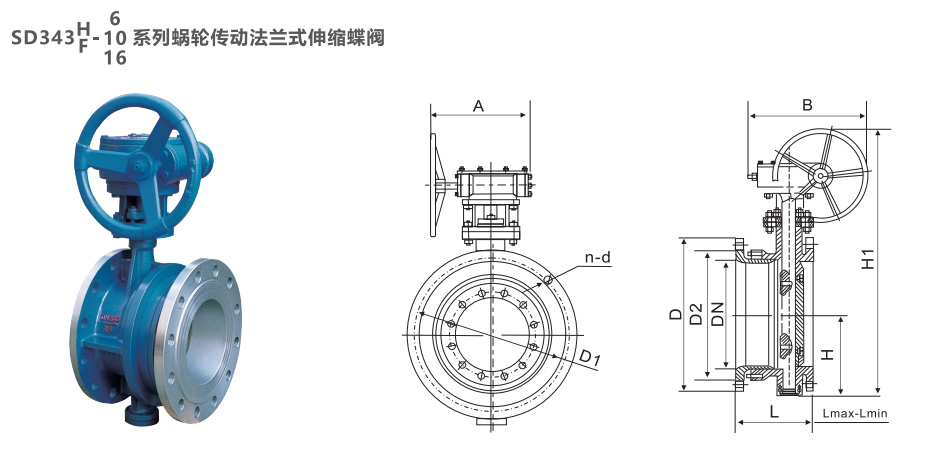 SD343H蜗轮法兰伸缩蝶阀适用于温度≤80℃,公称压力≤1.6MPa的食品、医药、化工、石油、电力、轻纺、造纸等给排水、气体管道上作调节流量和截流介质的作用,具有补偿管道热胀冷缩的功能。
